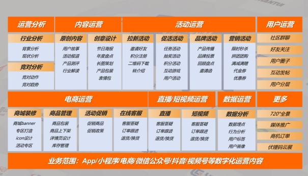 數字化運營(yíng)直面終端消費群體,為企業(yè)構建私域運營(yíng)體系,圍繞用戶(hù)從品牌、營(yíng)銷(xiāo)、產(chǎn)品、業(yè)務(wù)等角度運營(yíng),為企業(yè)創(chuàng )造品牌影響力、客戶(hù)體驗、營(yíng)銷(xiāo)轉化以及數據驅動(dòng)能力等方面價(jià)值,提升企業(yè)競爭力,實(shí)現可持續發(fā)展。