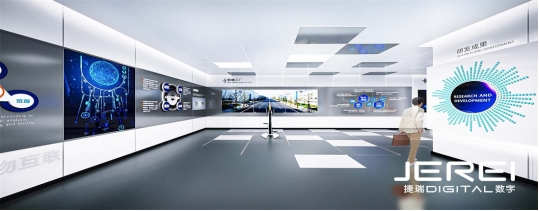 在數(shù)字智慧展廳的建設過程中,捷瑞數(shù)字充分利用了最新的數(shù)字技術和多媒體手段。例如,運用虛擬現(xiàn)實技術打造沉浸式體驗場景;利用大數(shù)據(jù)分析技術實現(xiàn)智能導覽和個性化推薦;通過互動投影、觸摸屏等多媒體設備增強參觀者的參與感和體驗感。這些技術的應用不僅提升了展廳的展示效果,也為參觀者帶來了前所未有的互動體驗。