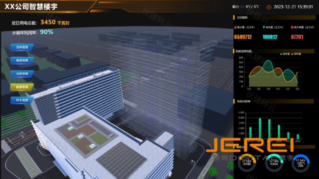 智慧園區(qū)系統(tǒng)集成供/排水、供電、網(wǎng)絡(luò)、供熱等管網(wǎng)系統(tǒng)數(shù)據(jù),直觀顯示建筑水能、電能、天然氣等能源消耗情況,并支持月度、年度數(shù)據(jù)統(tǒng)計、分析,實現(xiàn)三維管線數(shù)據(jù)、三維地表數(shù)據(jù)、建筑以及景觀數(shù)據(jù)的一體化可視決策。