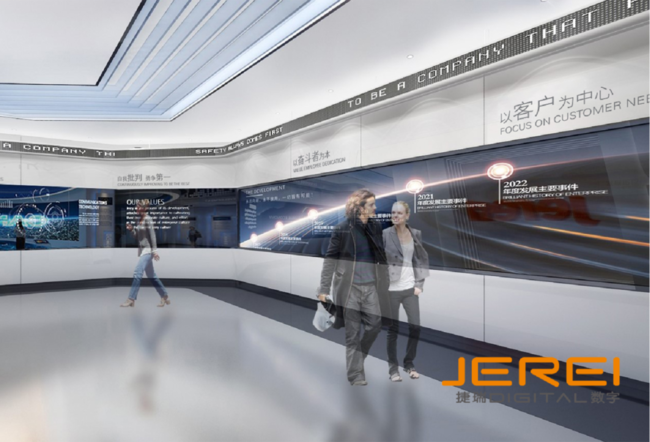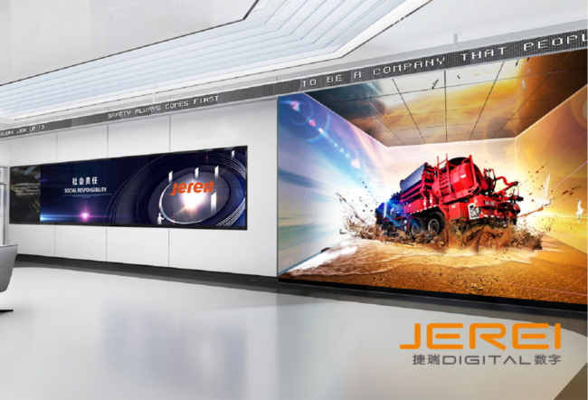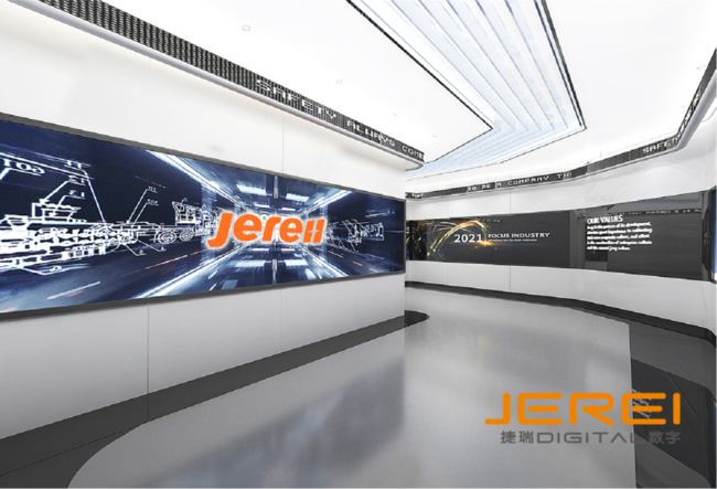 杰瑞集團(tuán)數(shù)字中心項(xiàng)目以LED大屏作為展示核心,無(wú)傳統(tǒng)展板,將展陳內(nèi)容以數(shù)字內(nèi)容盡數(shù)生動(dòng)呈現(xiàn)于墻上。這種方式不僅提供寬闊良好的視覺(jué)體驗(yàn),更賦予數(shù)字中心高度靈活性,方便通過(guò)智控后臺(tái)可一鍵切換多種展示內(nèi)容,滿足不同展覽受眾與活動(dòng)需求,有效降低成本,更具經(jīng)濟(jì)效益。