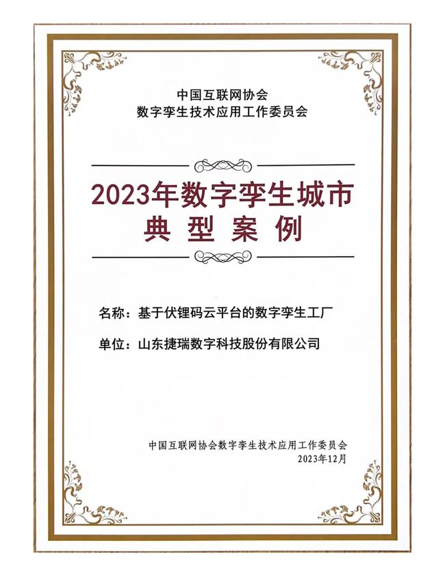 其中,捷瑞數字憑“基于伏鋰碼云平臺的數字孿生工廠”案例成功入選“2023年數字孿生技術應用典型案例(數字孿生城市典型案例)”。本次入選彰顯了伏鋰碼云平臺在數字孿生行業(yè)應用領域的創(chuàng)新性與成熟度,并能夠對企業(yè)數字化應用與轉型提供切實可行的解決方案。