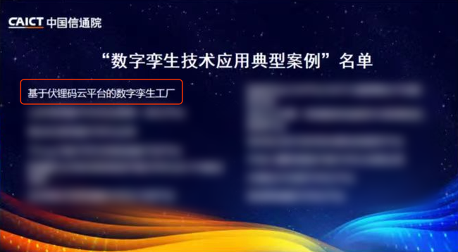“基于伏鋰碼云平臺的數字孿生工廠”成功入選2023數字孿生技術應用典型案例(數字孿生城市典型案例)