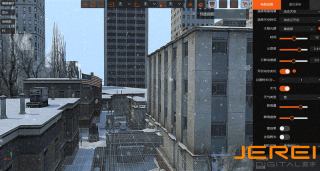 天氣編輯器在本次更新后可以輕松編輯雨雪天氣,包括調節降雨降雪參數、添加雷電效果以及應用天氣濾鏡等。此功能能夠幫助模擬各種復雜的天氣條件,為城市規劃、災害模擬等領(lǐng)域提供準確的天氣數據支持。